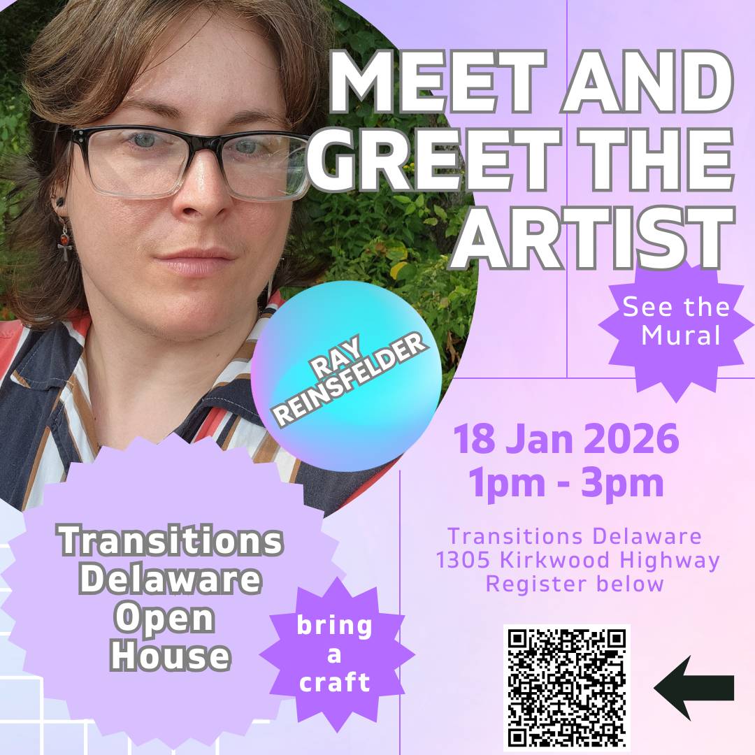 We are always adding new items to our Swag With A Purpose website where 100% of profits go directly back to TransitionsDE clients in the form of bus passes and art supplies. These aren't just nice extras—they're essential resources that remove barriers to care and foster healing through creativity.