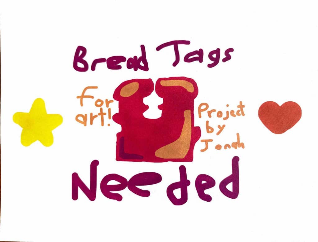 Please save your Bread tags for an art project - we will have a jar at the office for all Bread tag donations!